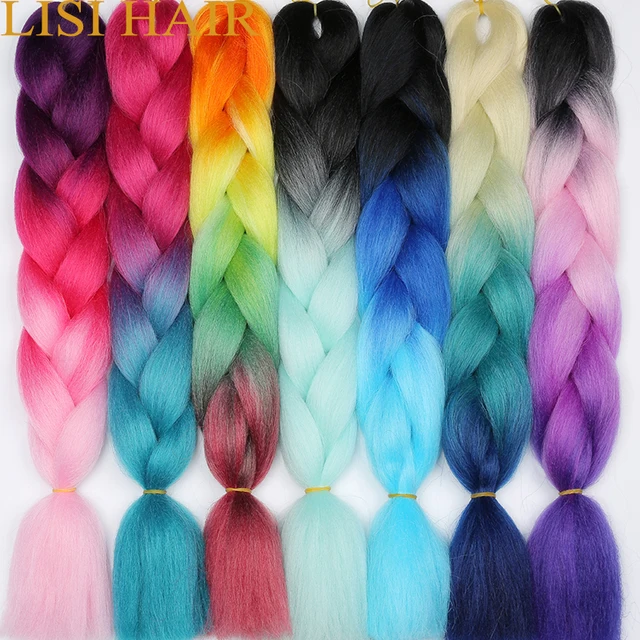 Us 2 82 40 Off Lisi Hair Ombre Kanekalon Jumbo Synthetic Braiding Hair Crochet Blonde Pink Blue Hair Extensions Jumbo Braids Hairstyles In Jumbo