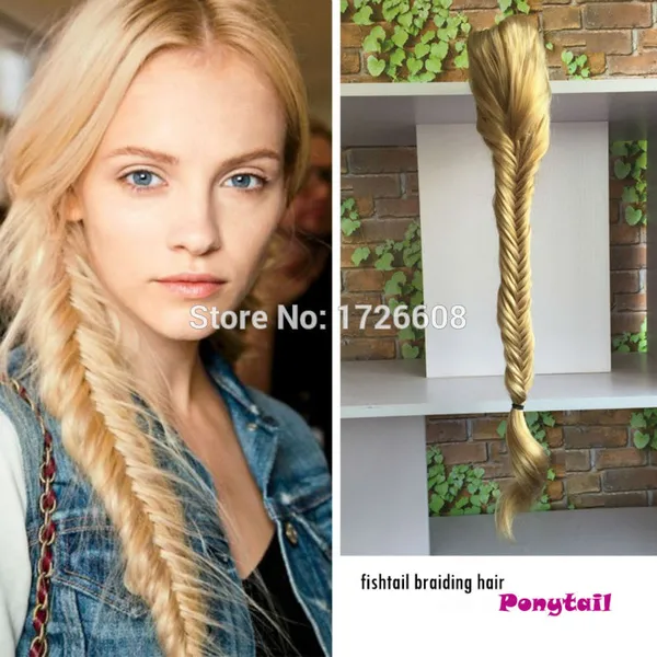 Cheap Wholesale Heat Resistant Women Thick Long Hairpiece Golden Blonde Synthetic Fishtail Plait Claw Clip In Ponytail And Drawstring Ponytails At