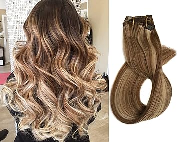 Clip In Hair Extensions Brown With Blonde Highlights Human Hair 7 Pieces 70g Fine Hair For Full Head Silky