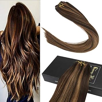 Sunny 16inch Seamless Weft Sew In Hair Bundles Multi Color Darkest Brown With Caramel Blonde Hair