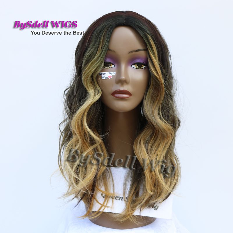 Luxury Synthetic Wig With Blonde Tip Celebrity Ciara Highlight Blonde Color Hairstyle Wig Dark Skin Scalp Wigs For Black Woman