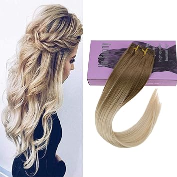 Vesunny 22 Blonde Balayage Hair Clip In Extensions Human Hair 14 Dark Blonde Mix 60 Platinum Blonde