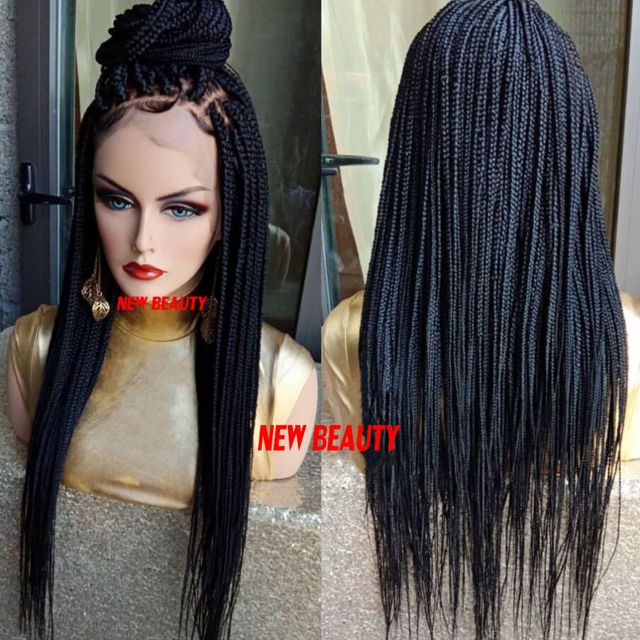 Long Black Brown Blonde Burgundy Color Jumbo Braids Wig Synthetic Braiding Hair Frontal Medium Braid Lace Front Wig For Black Women