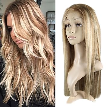 Full Shine 18 Remy Lace Front Wigs Human Hair Balayage Ombre Color 8 And 60 Blonde Highlighted