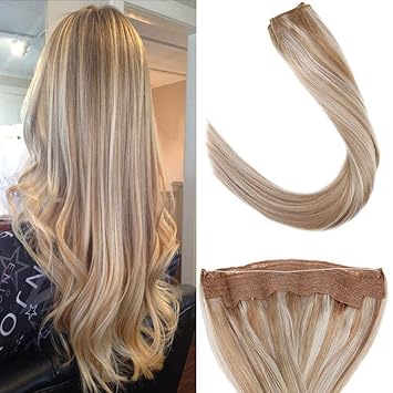 Laavoo 18 Adjustable Invisible Wire Highlight Flip Human Hair Extensions Ash Blonde Mixed Light Blonde