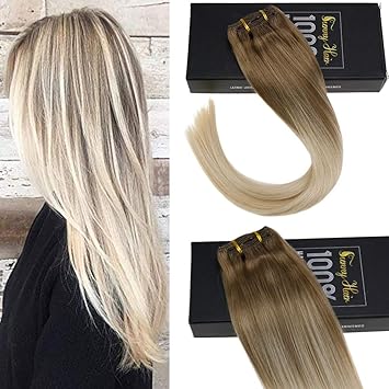 Sunny 20 7pcs 120gram Real Human Hair Extensions Clip In Blonde Balayage Silky Straight Real Full