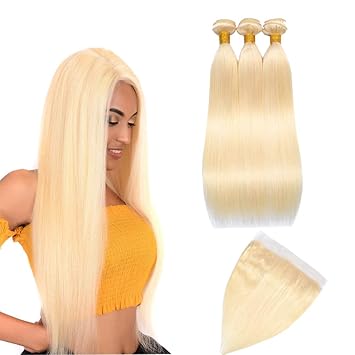 Free shipping by amazon. The blonde bundles with fontal could help you get brazilian hairstyle for long blonde straight hair that makes you look gorgeous. Dachic 613 blonde human hair bundles with frontal 9a brazilian straight hair 3 bundles with frontal closure 100 virgin human hair weave with 13x4 lace frontal 10 10 1010 45 out of 5 stars 104.